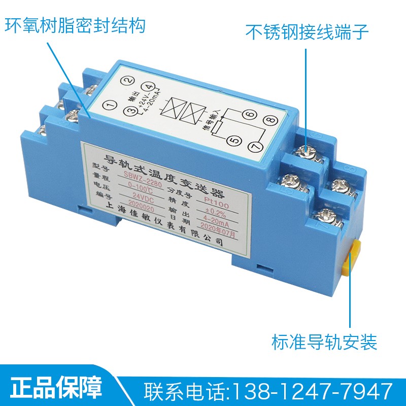 SBWZ-2280 rail temperature transmitter PT100 0 2 temperature transmitter module 24VDC 4-20MA