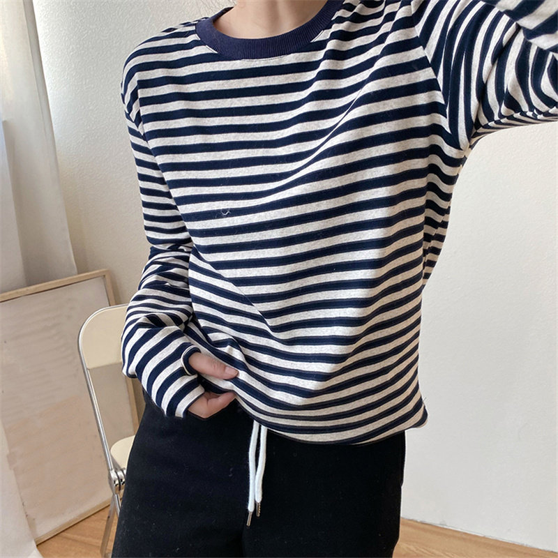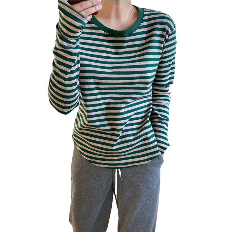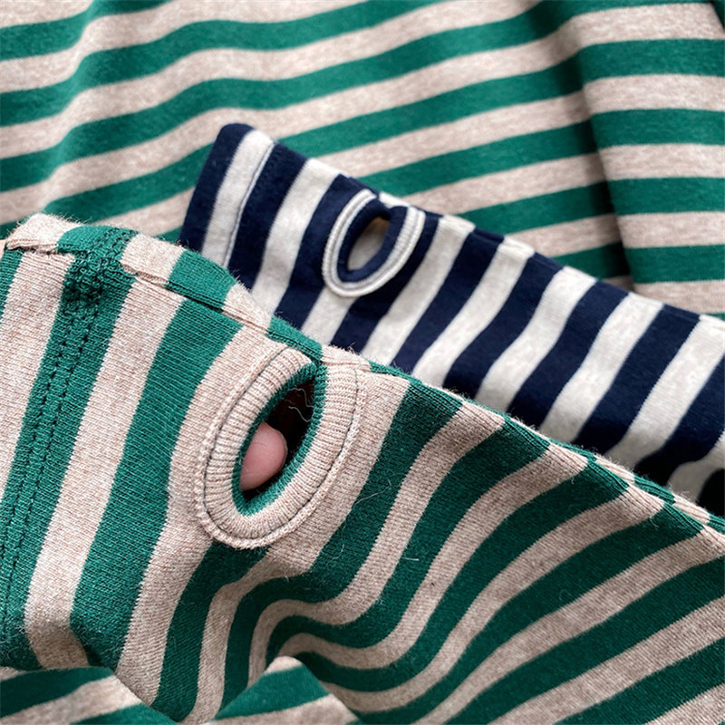 Nursing clothes autumn and winter mid-length version go out fashion nursing thumb button striped long-sleeved postpartum round neck inner top
