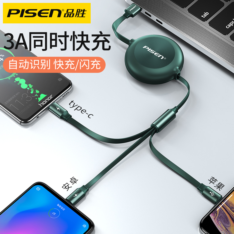 Pint Wins Apply To Charger Data Line One Drag Triple Phone Charging Head Multi-Head Double Head Telescopic Multipurpose Quick Charge Android Apple Plug Universal Type Multifunction Three-in-one Vehicle Customized Logo