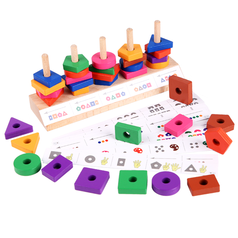 Monshi Early Education Kindergarten Small Middle Class Geometric Shapes Cognition Pairing Five Sets Of Pillar Building Blocks Puzzle Toys 1-3 years old