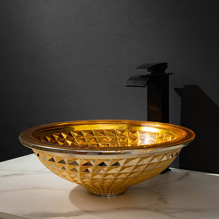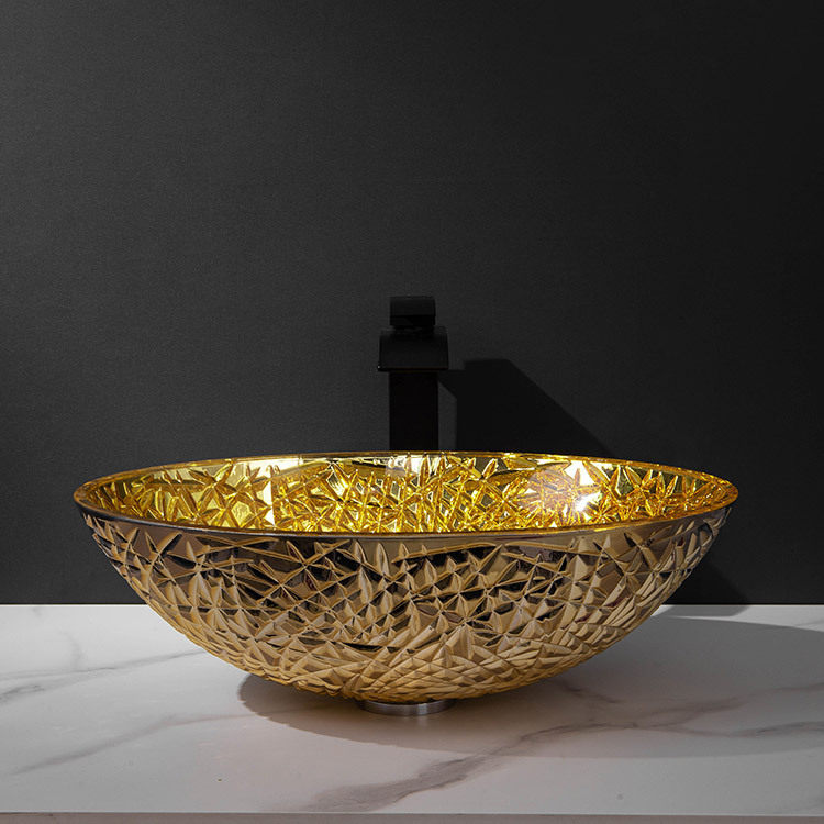 Bathroom Plated Glass Art Basin Home Oval Washbasin Hotel Golden Terrace Basin Crystal Wash Basin