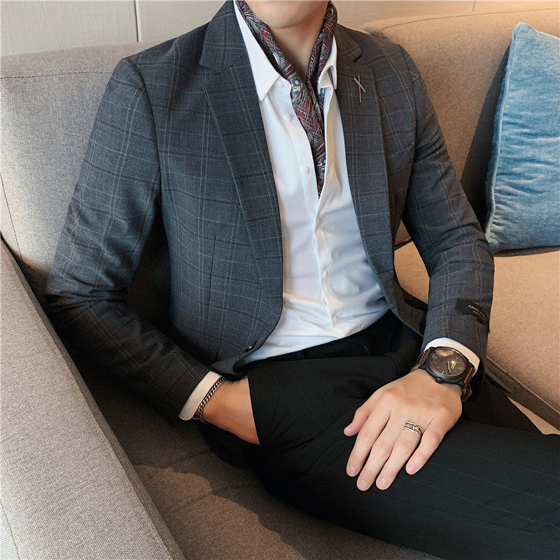 OECANA2021 Spring Autumn New Pint Men Casual Little Suit Han Version Sashimi Plaid West Suit Male Coat Tide