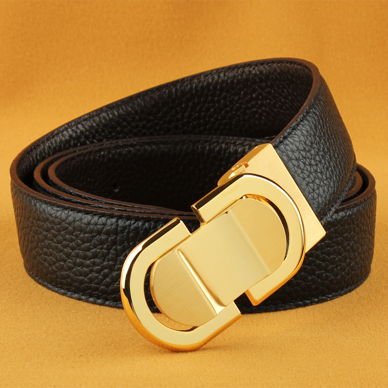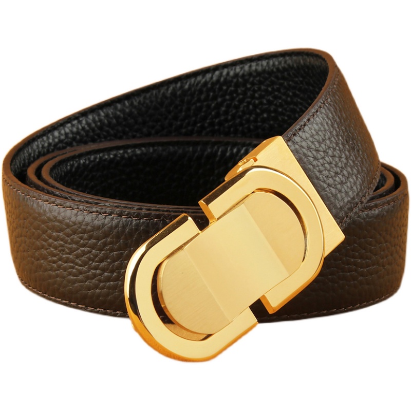 Men's belt top layer cowhide smooth buckle plate buckle business casual Korean version of pure copper pants belt belt pants belt CI43