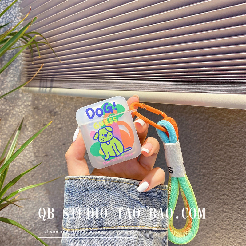 Airpods 1 2 generation versatile (transparent colorful puppy) Airpods 1 2 generations of versatile (transparent colorful puppy) fluorescent hanging rope AirPods P