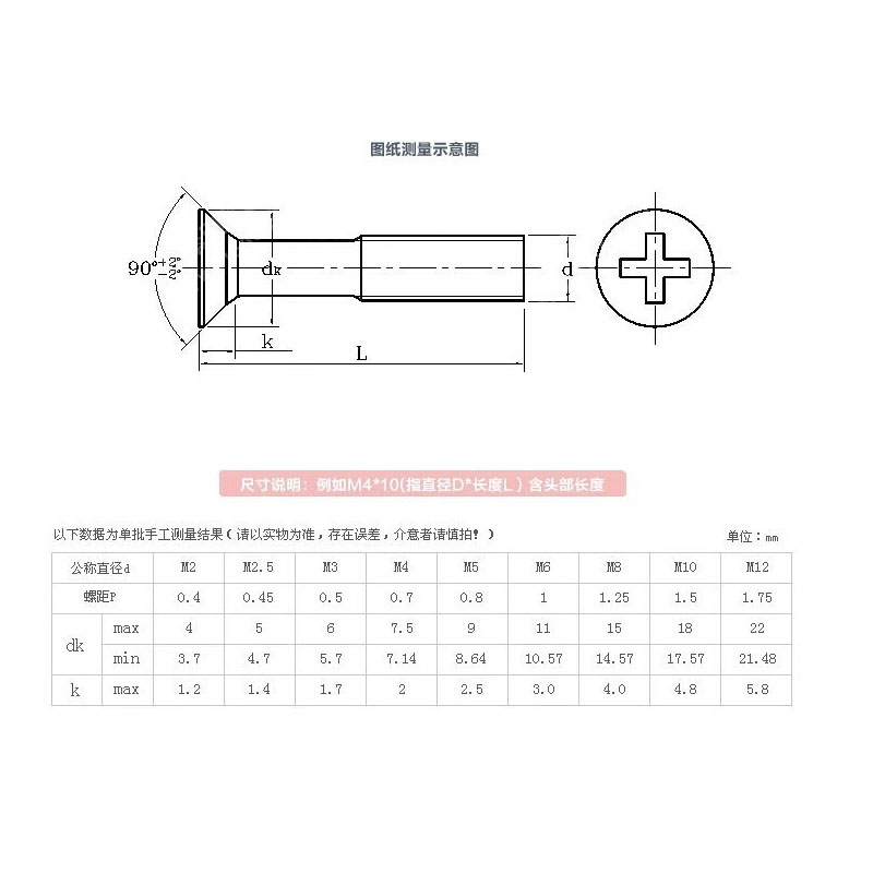 M3M4M5 304 stainless steel cross countersunk head machine screw flat head machine wire full tooth screw 819-85
