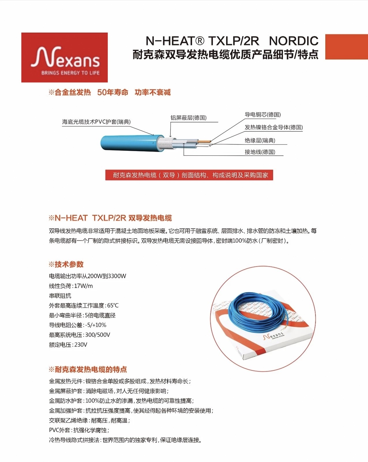 Nexans electric floor heating double-conducting heating electric heating electric floor heating household heating wire non-carbon fiber floor heating door-to-door installation