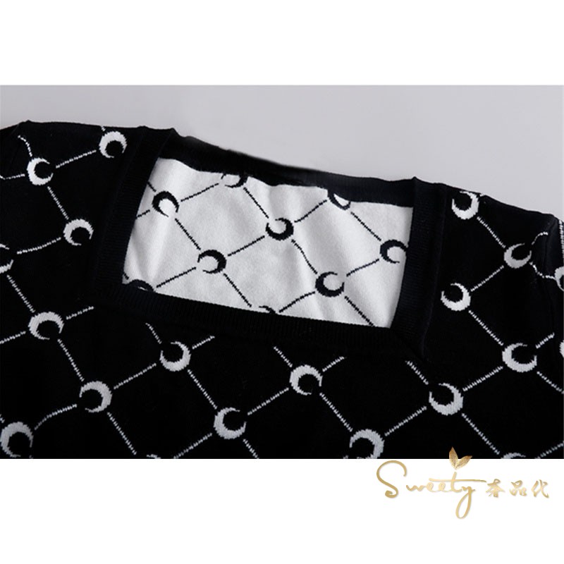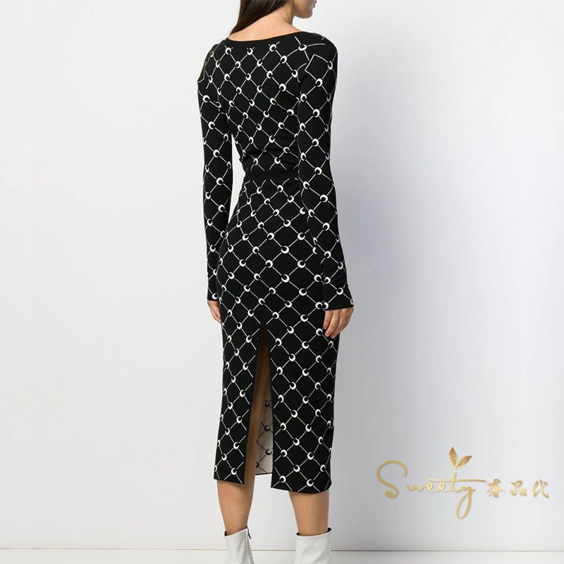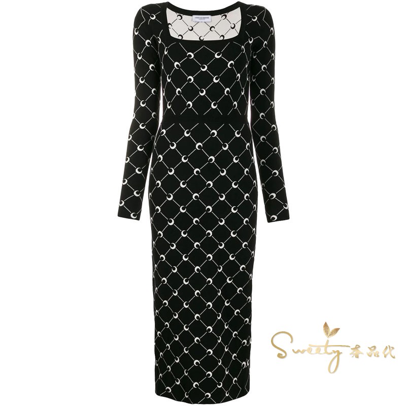 Marine Serre 21 New Long Knit Dress Moon Embroidered Sheath Split Classic Elegant Long Dress