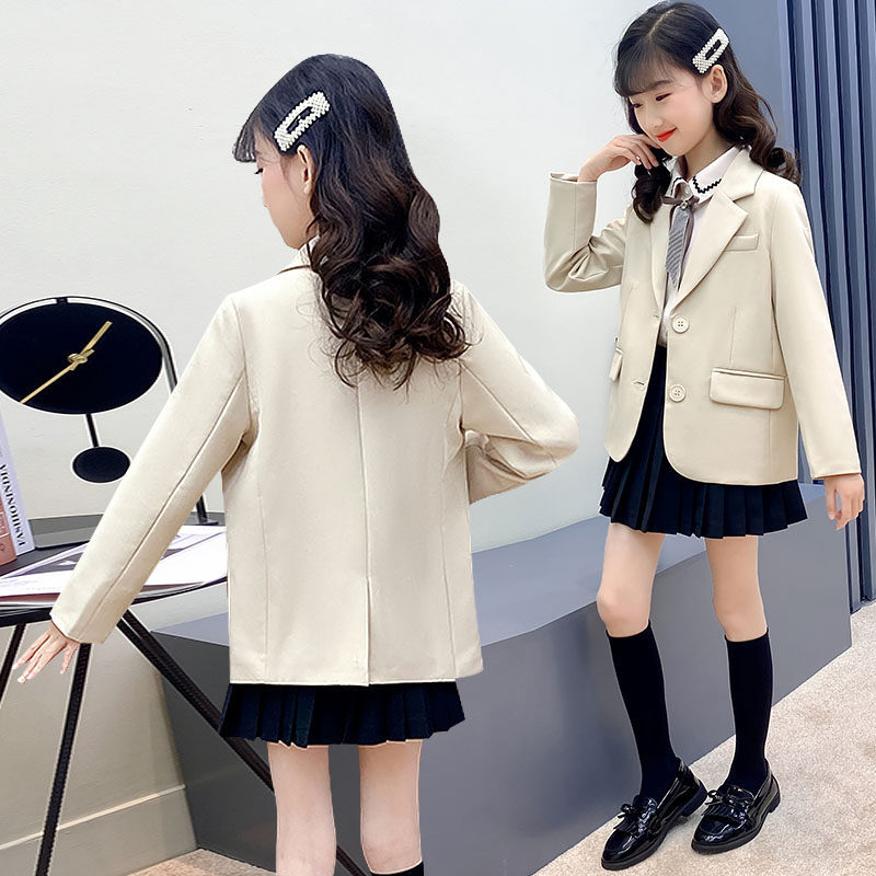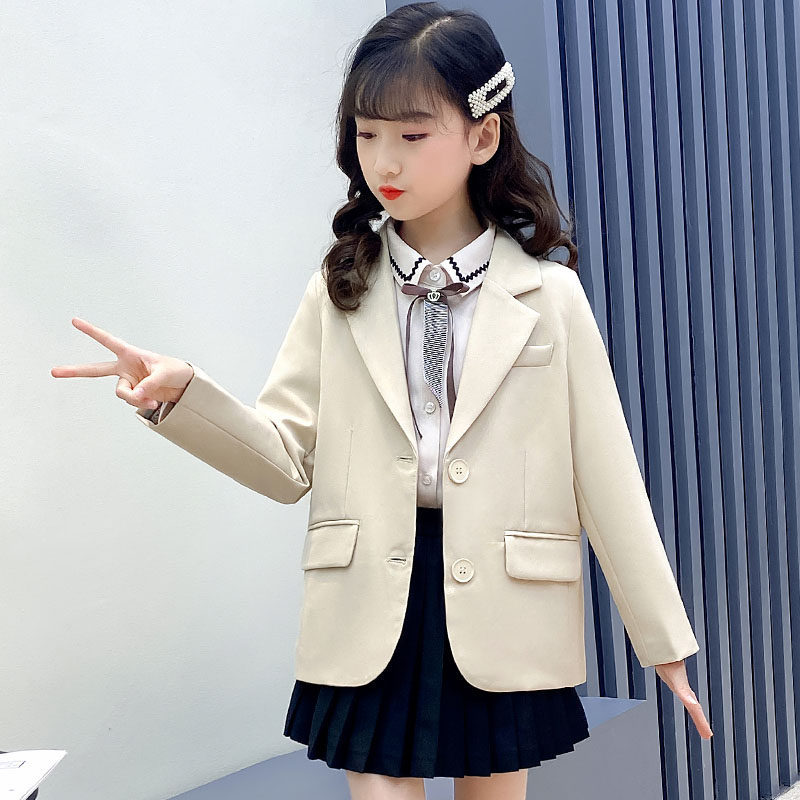 Girl Suits Suit Jacket Jacket Spring Autumn Children Small West Suit CUHK Children's Tennis Red Overbearing Girl Three Sets Host