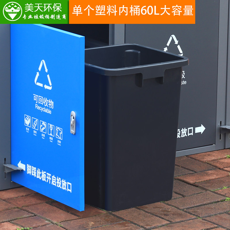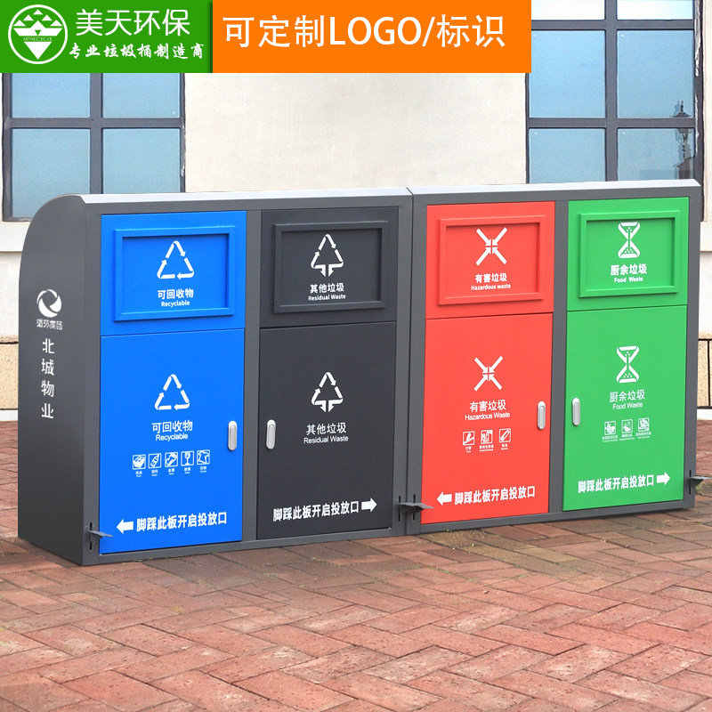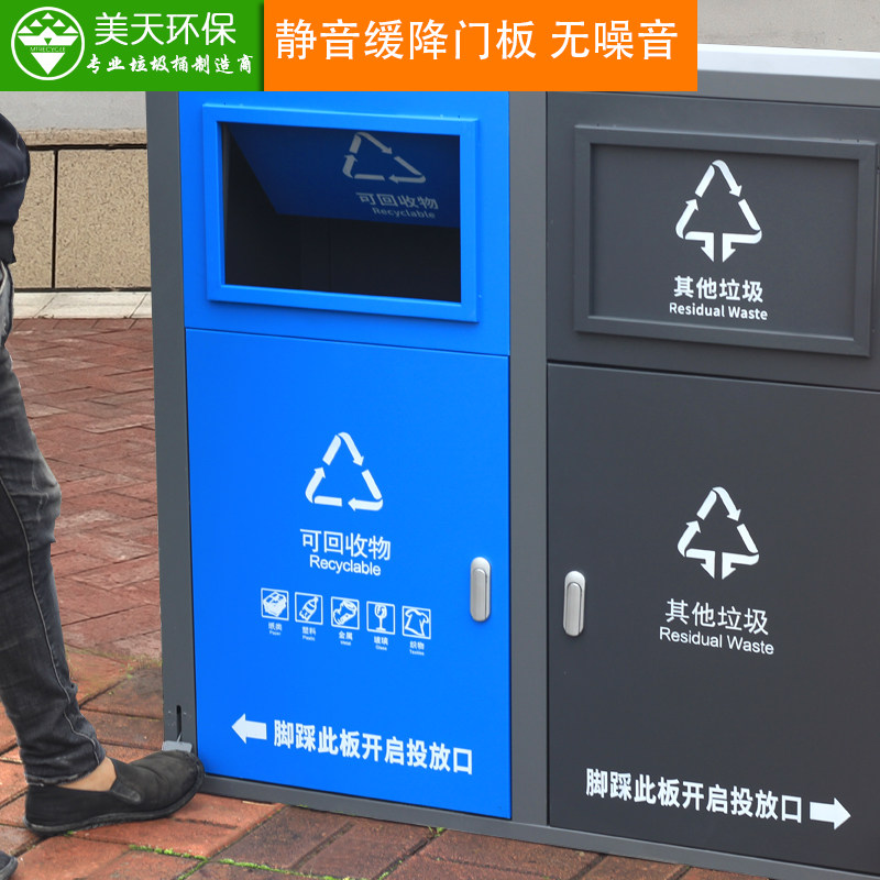 Meitian outdoor trash can stainless steel large sanitation community property pedal classification with lid trash can can be customized