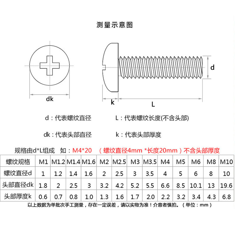 M3M4M5M6 201 stainless steel cross disc head screw semicircular head machine screw white steel meta-machine GB818-85