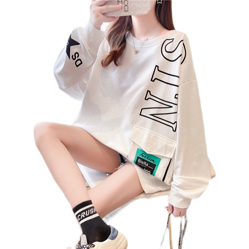 Pregnancy women's clothing autumn clothing 2021 new letters blouses Korean version Fashion easing large size in the middle of the long version of the women's spring and autumn