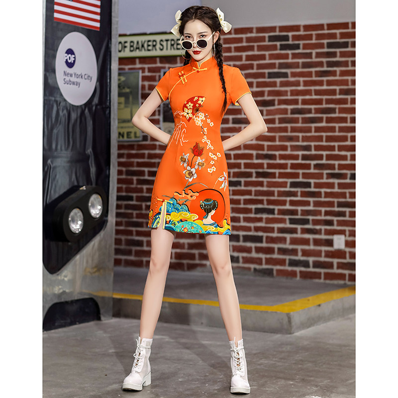 National Tide Qipao 2022 New Young Teenage Girl Summer Little Sub Short of orange Improved Chinese wind women's clothing