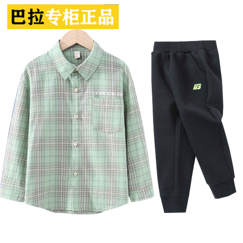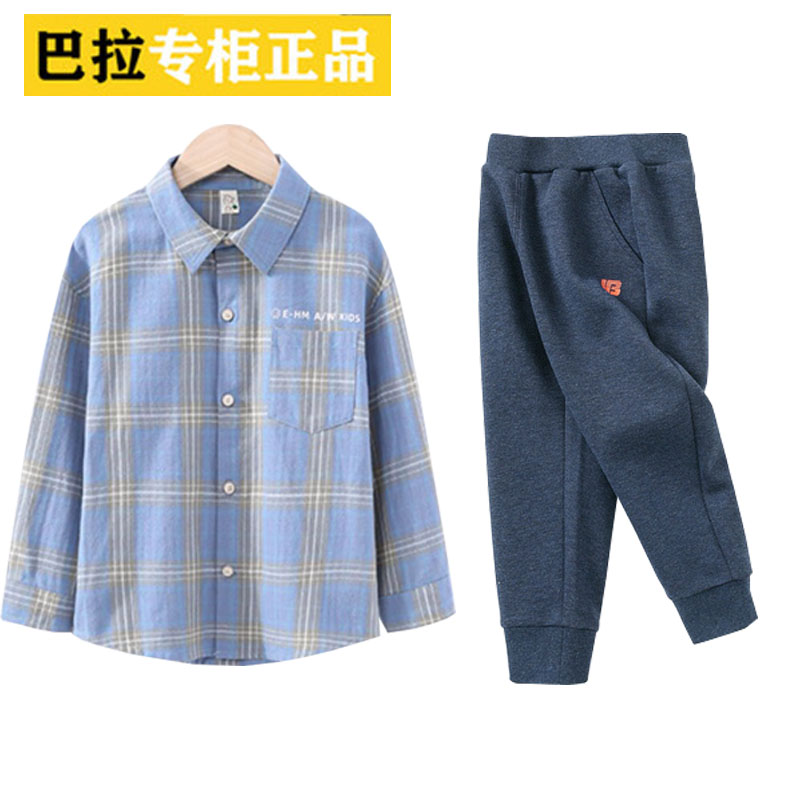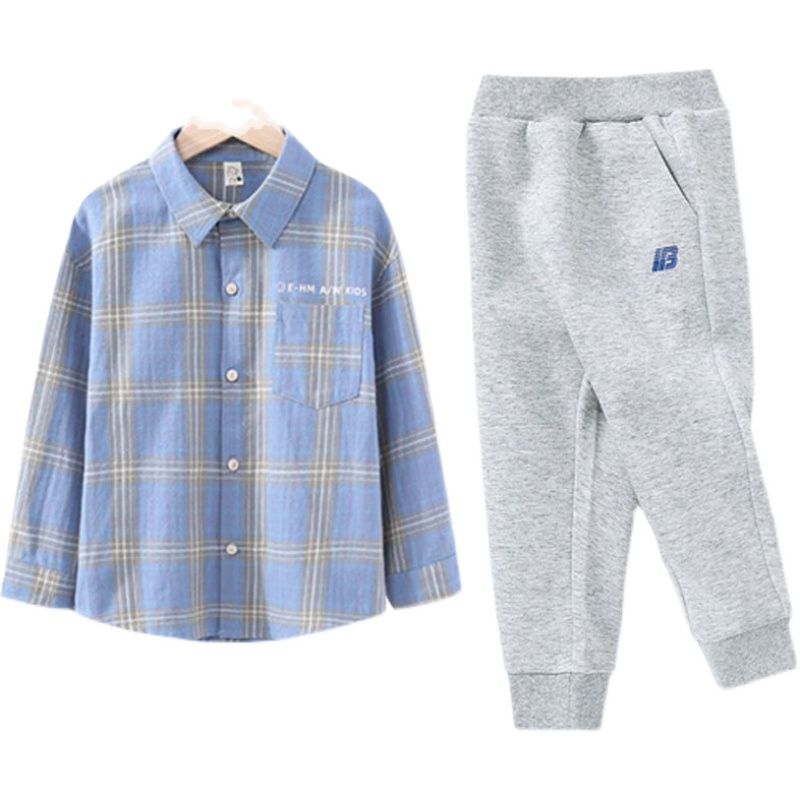 Balacole 2021 CUHK Boy Sports Pants Pure Cotton Casual Spring Autumn Pants Boy Long Sleeve Plaid Shirt Two-piece Set