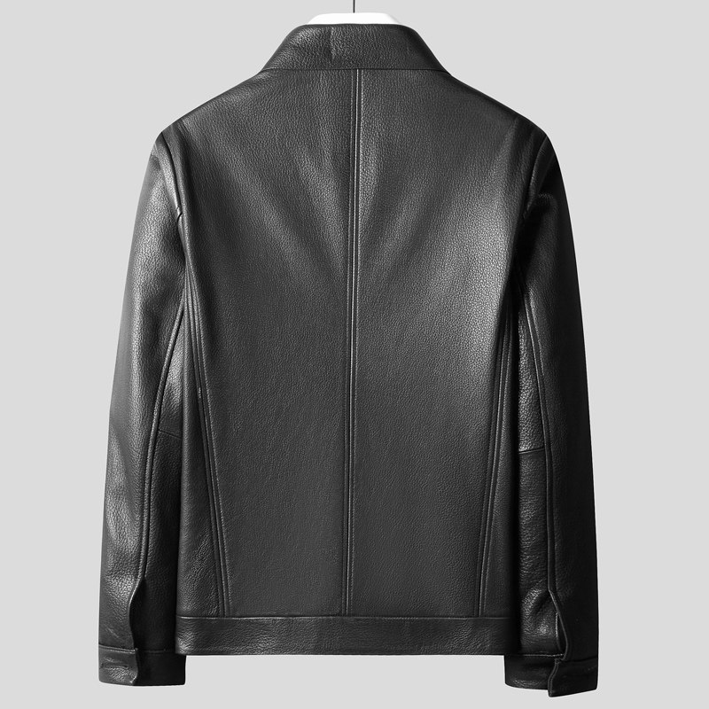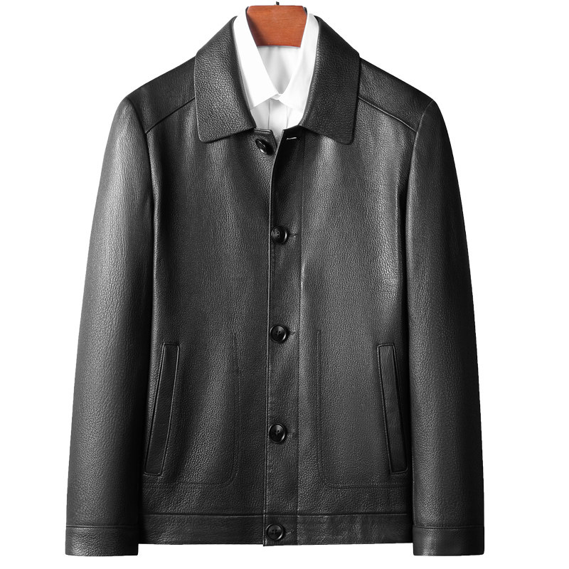 2021 New Haining head layer deerskin leather jacket men's short leather jacket lapel fashion casual leather jacket