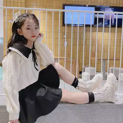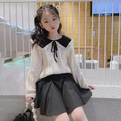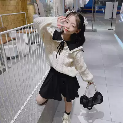 Pola Korean children's clothing girls sweater 2021 autumn children's college style sweater middle and large children's lapel sweater