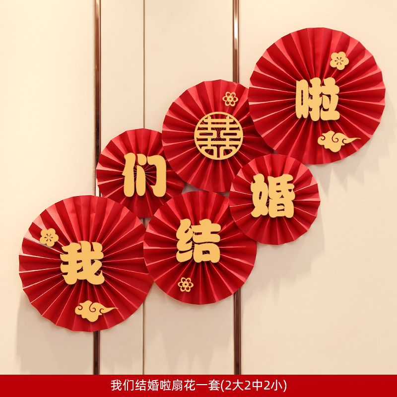 Wedding Happy Character New House Arranged Wedding House Decoration Creative Paper Fan Flower Male Fang Home Fan Flower Atmospheric Living Room Bedroom