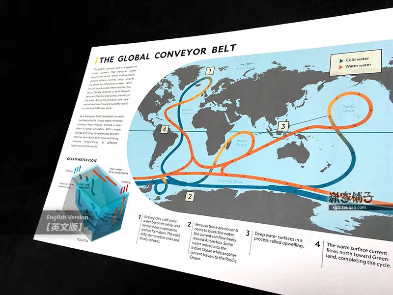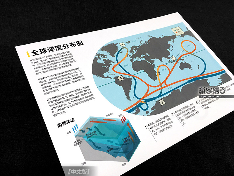 Global Ocean Current Distribution Map (Chinese and English) Junior High School Teaching Atlas Wall Chart Poster Decorative Painting