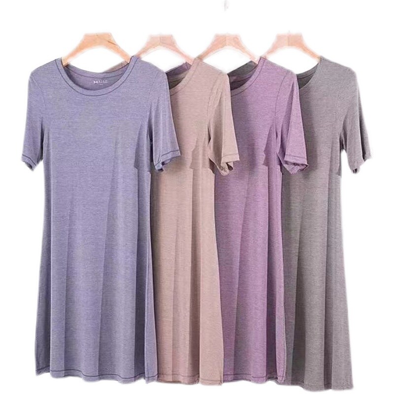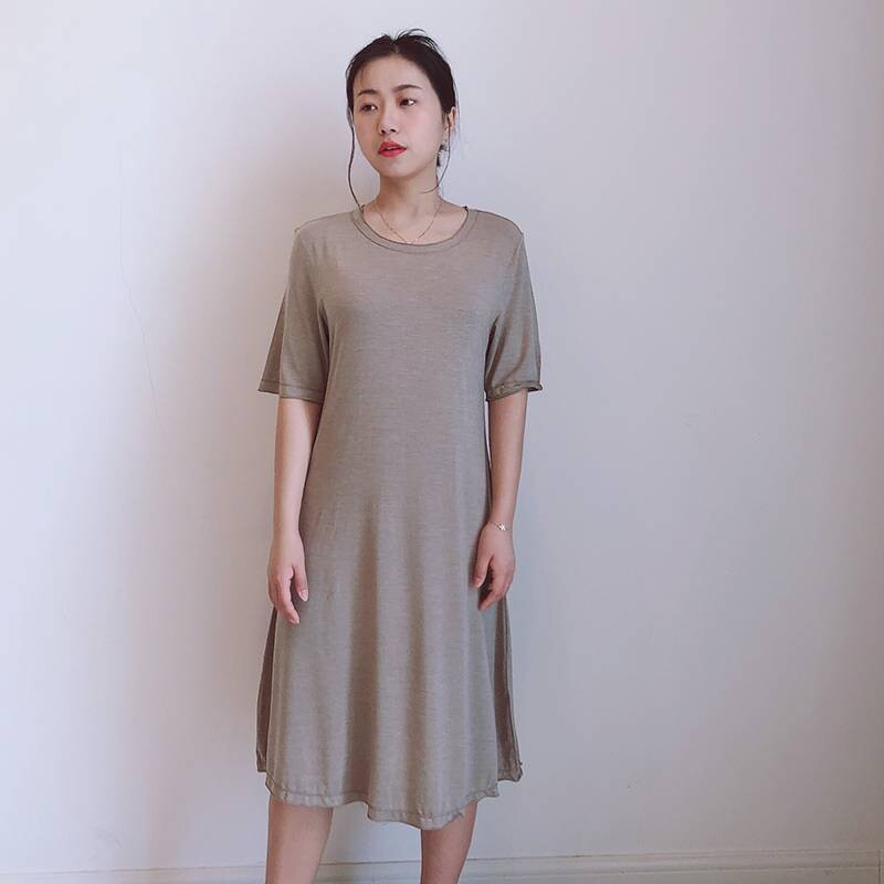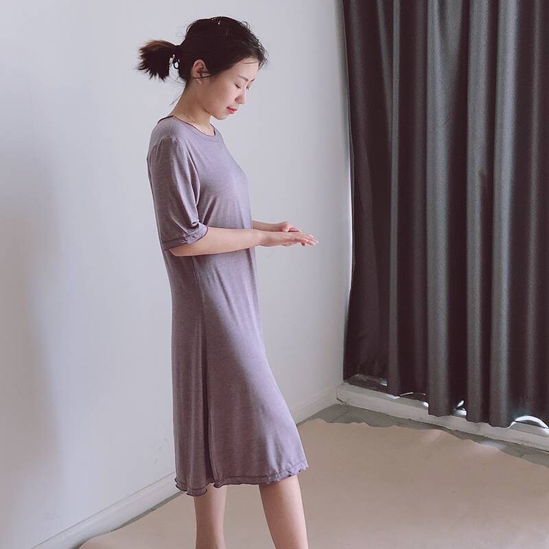 Summer New Ladies Cashmere Protein Nightdress Solid Color Comfortable Breathable Loose Large Size Homewear Without Chest Pad Japan