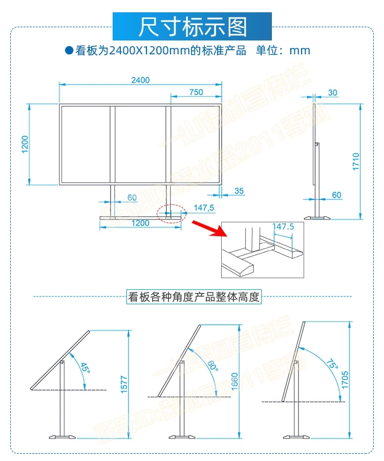 Adjustable angle display board workshop management kanban poster display rack propaganda column vertical floor aluminum alloy information bar