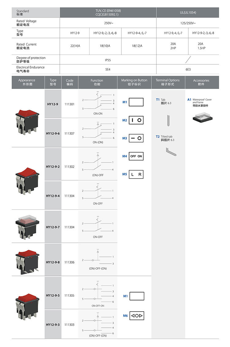 KEDU KOTU START Switch HY12-9-5 M1 6 foot 3 leg 250V22(14)A