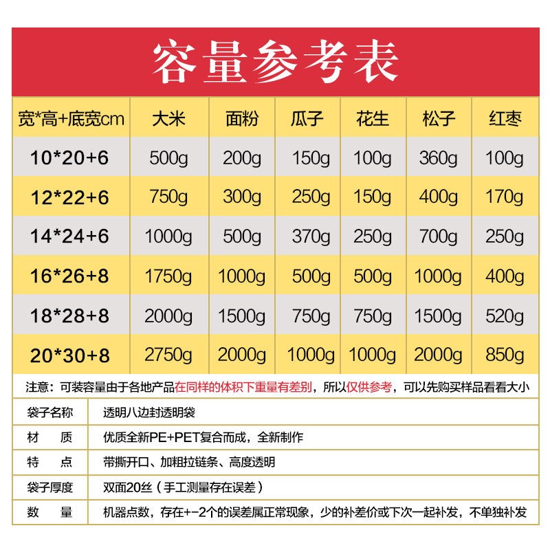 Cat Food Split Seal Bag Eight Sides Seal Transparent Self-proclaimed Bag Miscellaneous Grain Flower Tea Food Packaging Thickening Sealed Red Dates