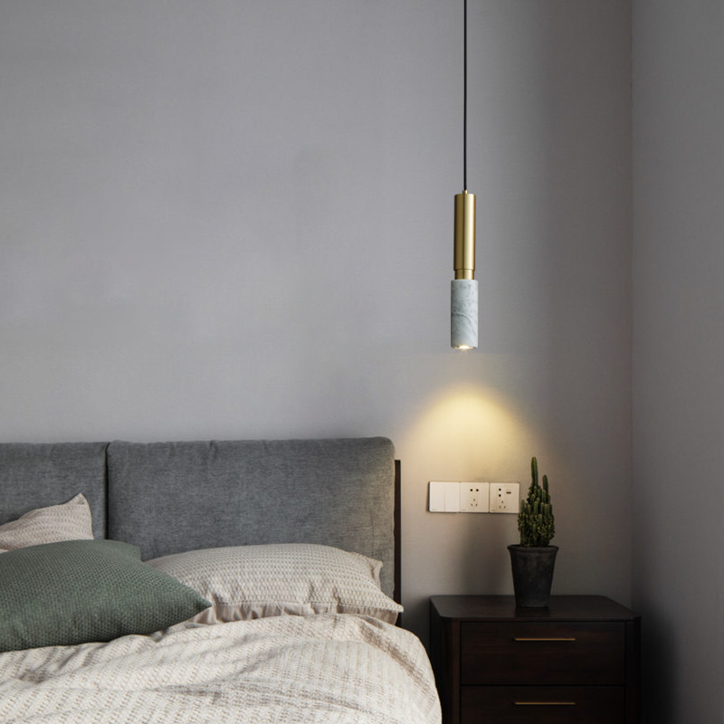 Nordic all-copper bedroom bedside chandelier marble bar light luxury TV background wall creative column front chandelier