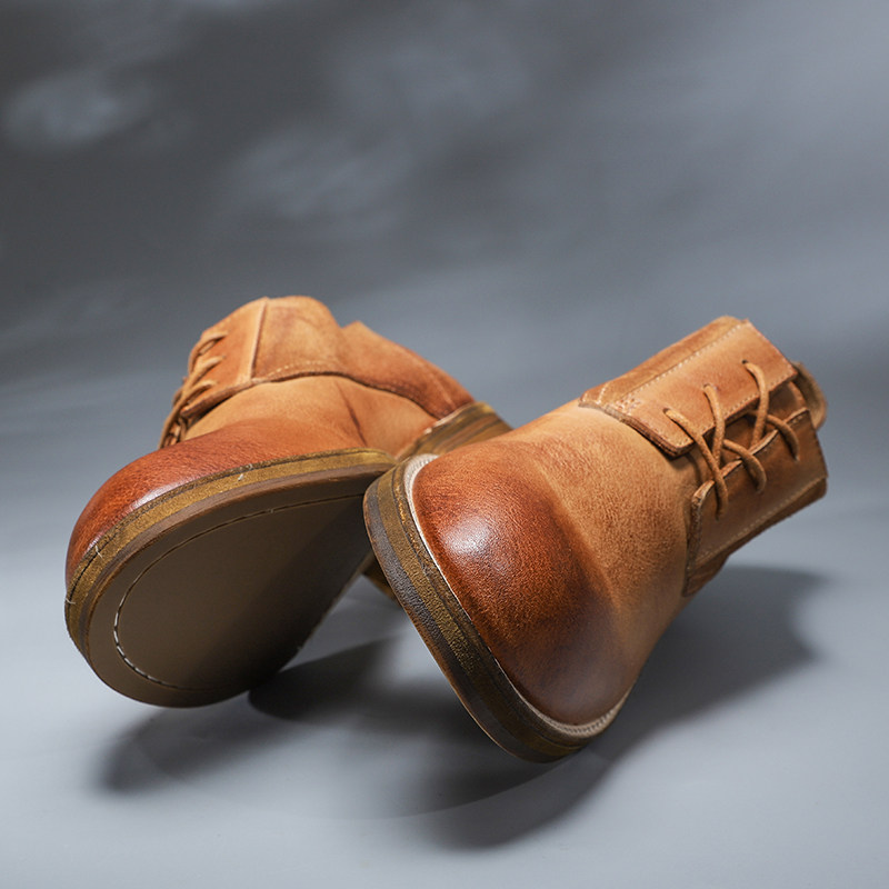 Original hand-made Guntt men's leather strap with round head British vintage to make old tall leisure large scalp shoes male