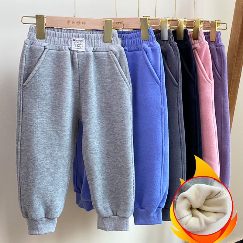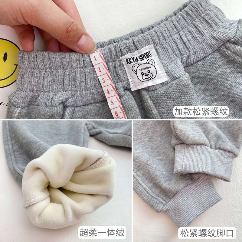 Children's casual pants plus velvet autumn and winter baby pants quilted boys warm Western style beam pants girls sweat pants thickening