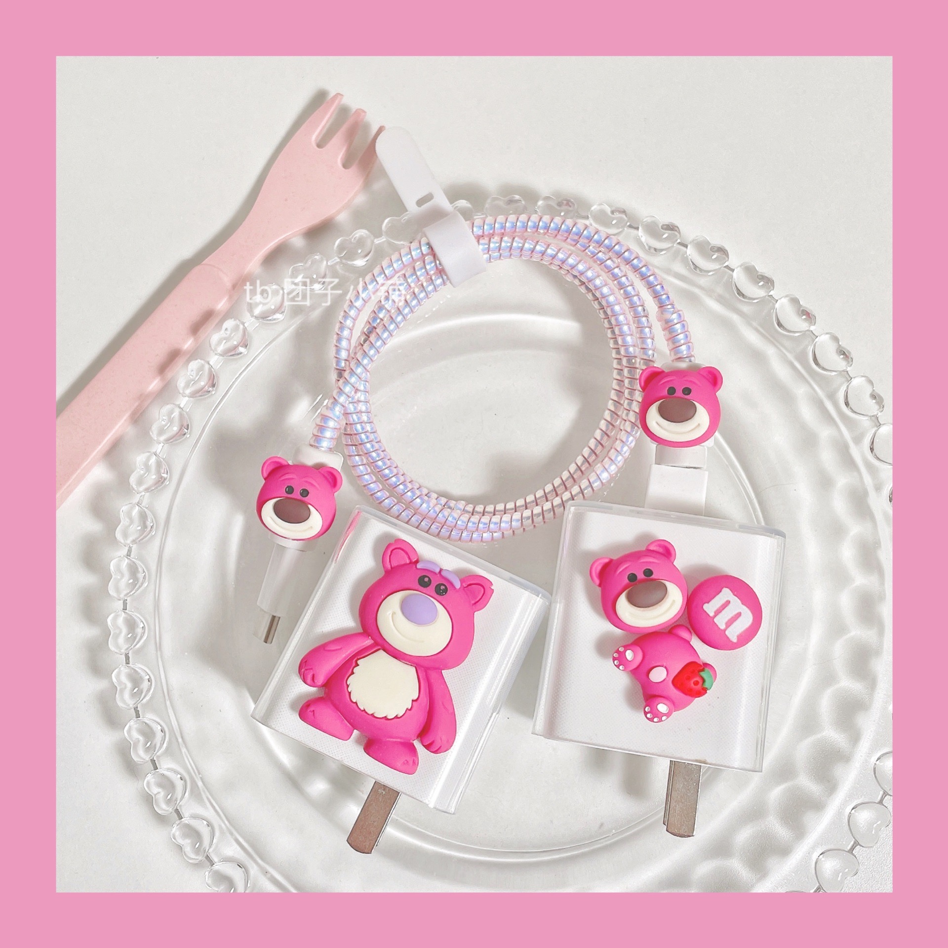 Hook three strawberry bear charger transparent set hook buckle three strawberry bear set data line protection hook buckle three strawberry bear set data line protection hook body strawberry bear charger transparent set hook buckle
