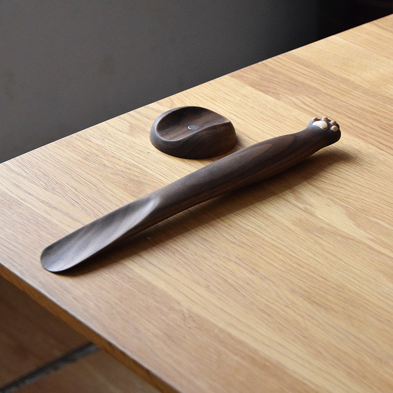 Cat's claw shoehorn cute wooden long-handled shoe lifting shoe holder home wear shoes do not bend the artifact