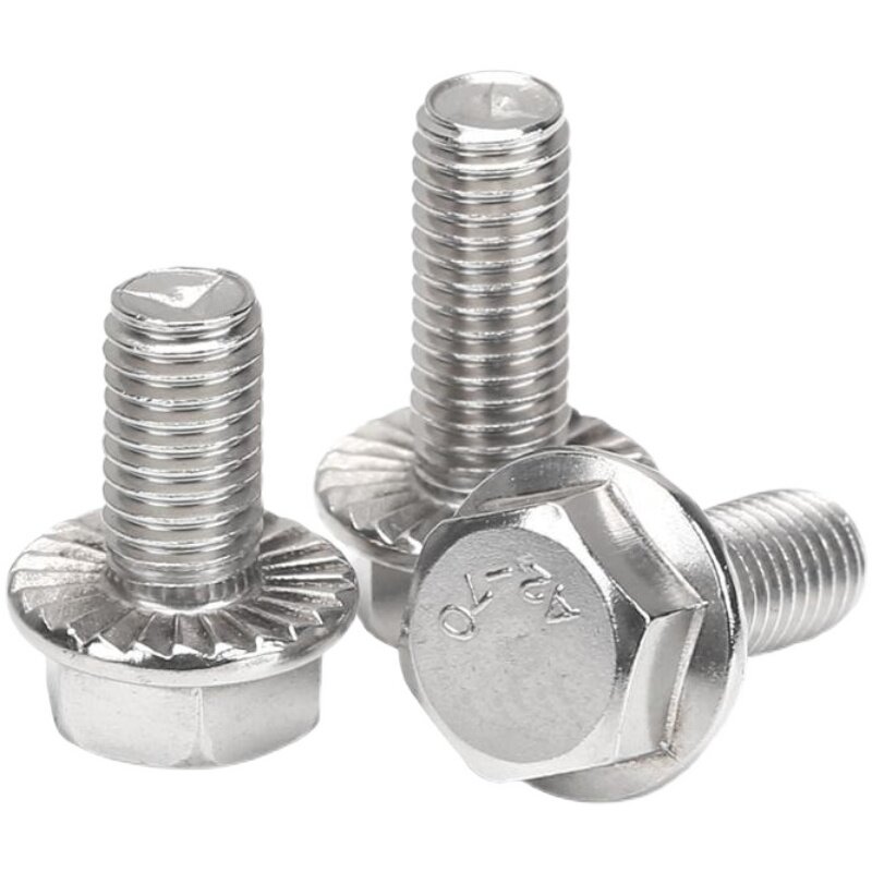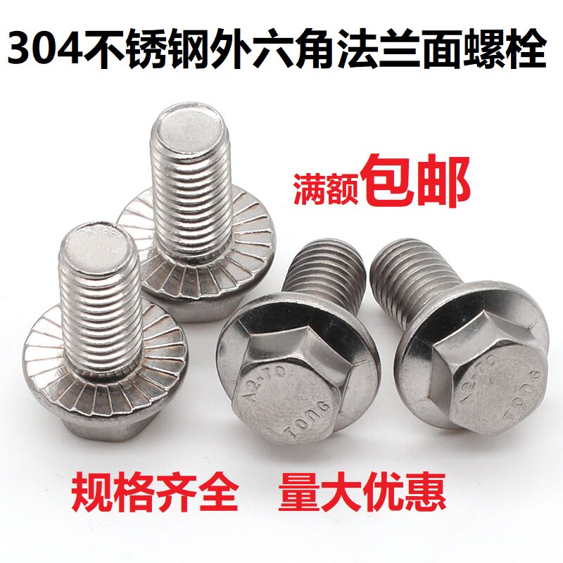 304 stainless steel outer hexagonal flange face bolt with cushion flower gear pattern anti-slip screw head M5M6M8 * 16-50