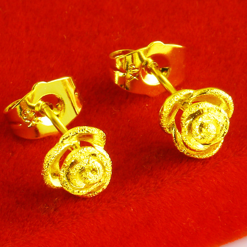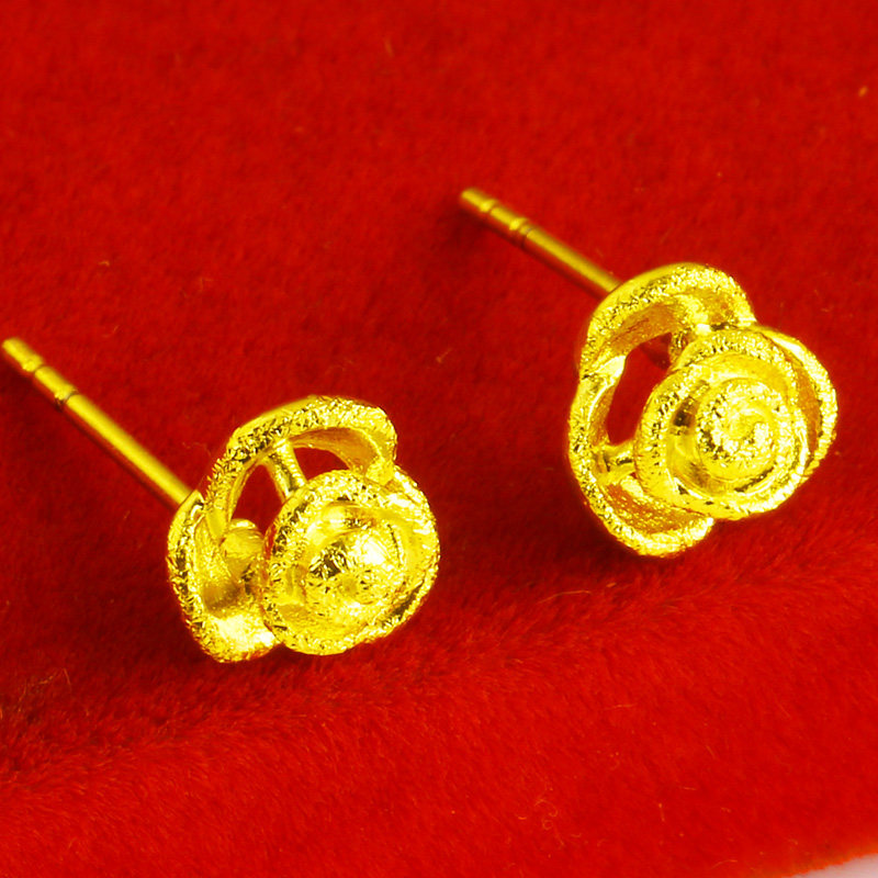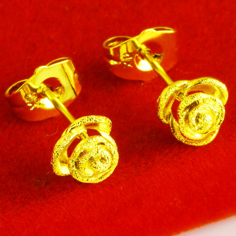 Gold earrings men's and women's earrings 9999 pure gold earrings real gold jewelry roses for lovers pure gold