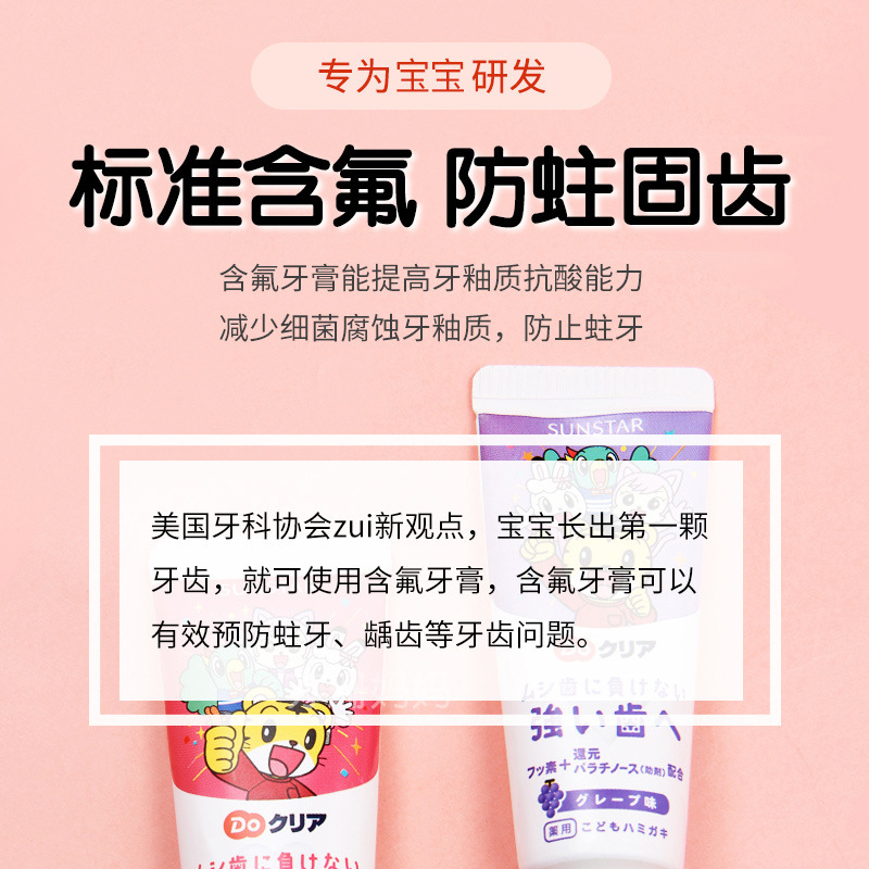 Domestic spot Japan imports Qiaohu toothpaste Children's baby anti-moth to yellow spot protective tooth strawberry grape taste 70g