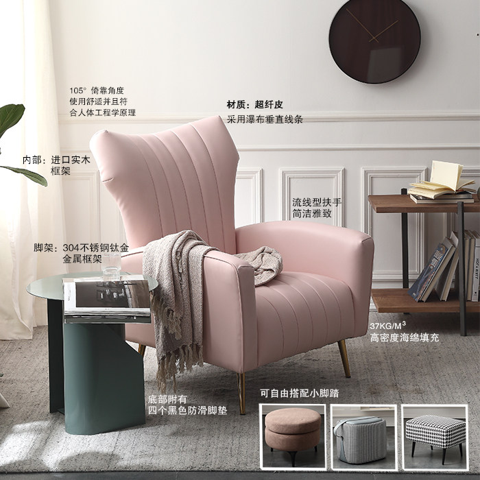 Light luxury style modern minimalist home user-type net red living room small apartment casual adult leather fabric waterfall single chair