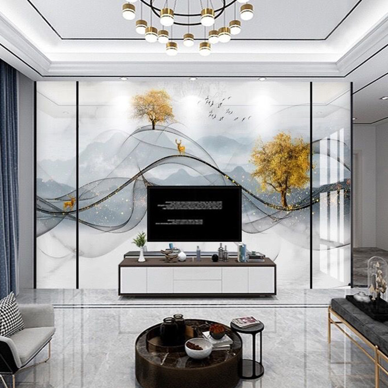 Bamboo and wood fiber integrated wall panel living room modern light luxury TV background wall quick-install gusset plate film and television wall decorative guard plate