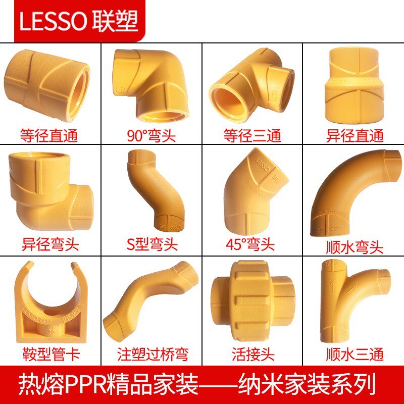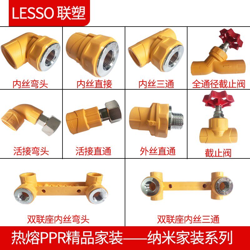 Liansu nano antibacterial pipe PPR high-end home decoration hot and cold water pipe double-connected inner tooth elbow different diameter direct three-way valve