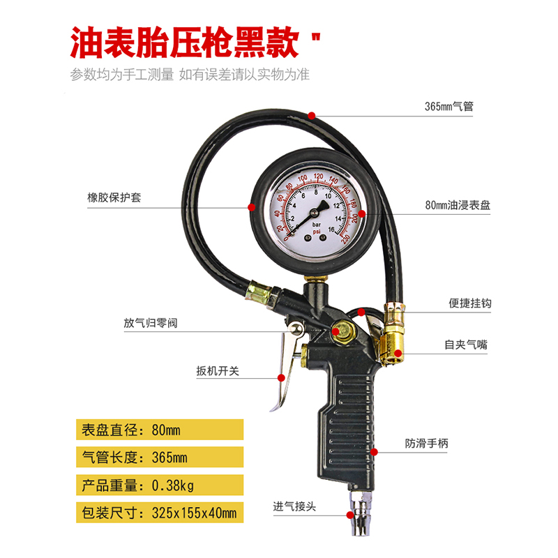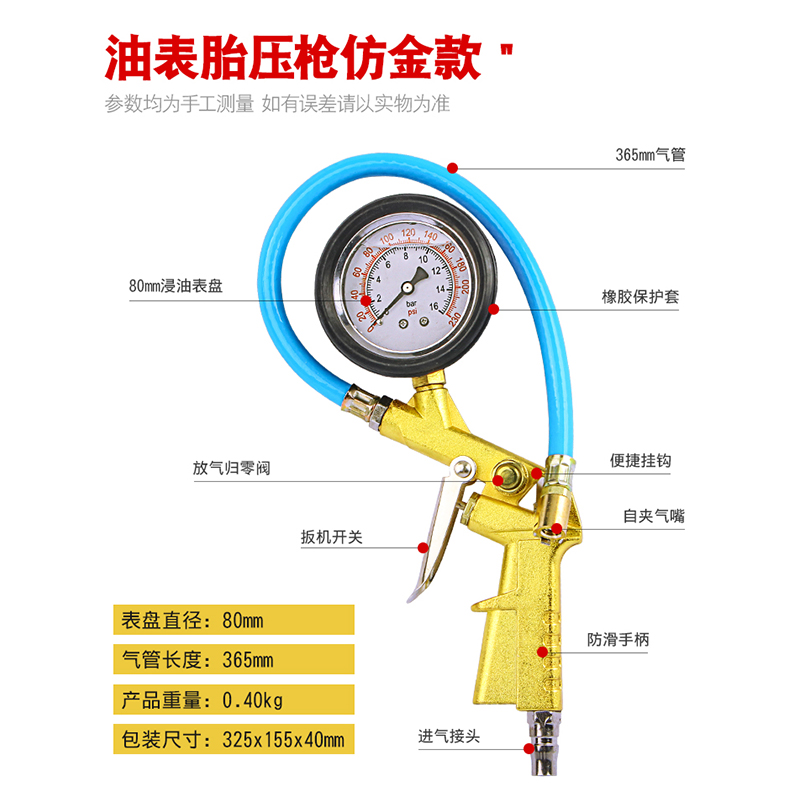 Shock-proof immersion oil car tire pressure gauge Pneumatic Tire Pressure Gun Cheer Inflatable Inflatable Gun Piezometer Gas Gauge Deflation