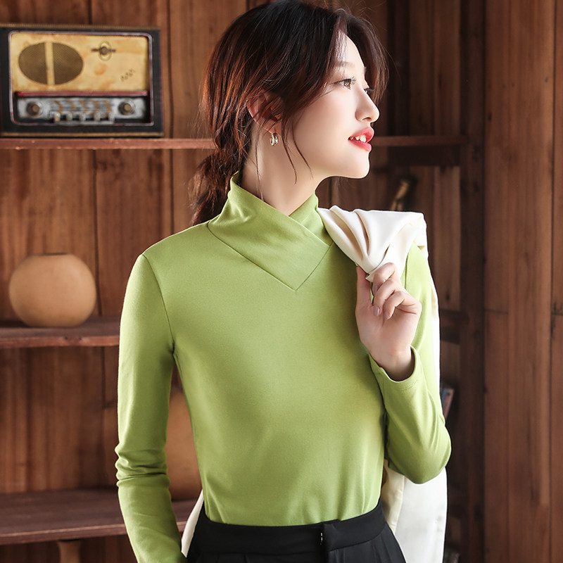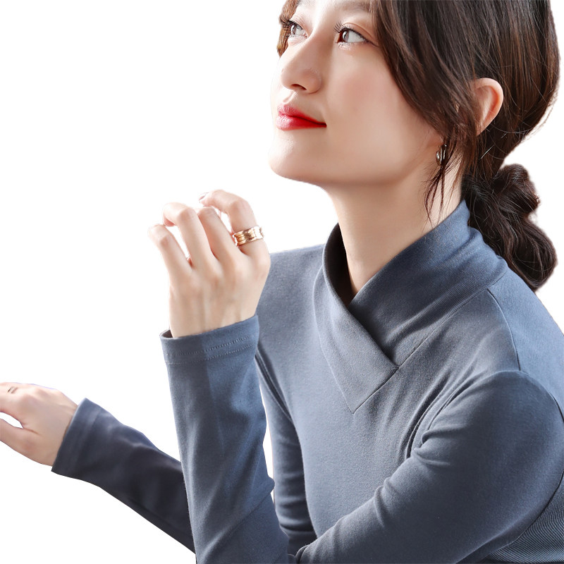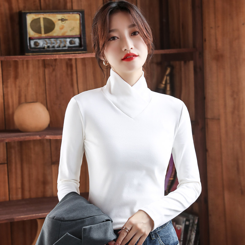 Undershirt women's autumn winter inside the spring and autumn wild 2021 new black V-neck foreign long-sleeved T-shirt women's blouse tide