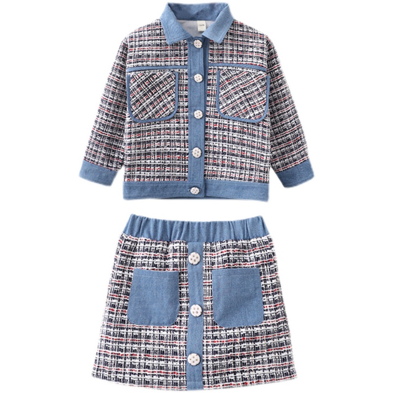 Girl Little Scents Wind Suit 2022 Spring New Autumn Fashion Trends Trendy Girl Foreign Pie half body dress Two sets d