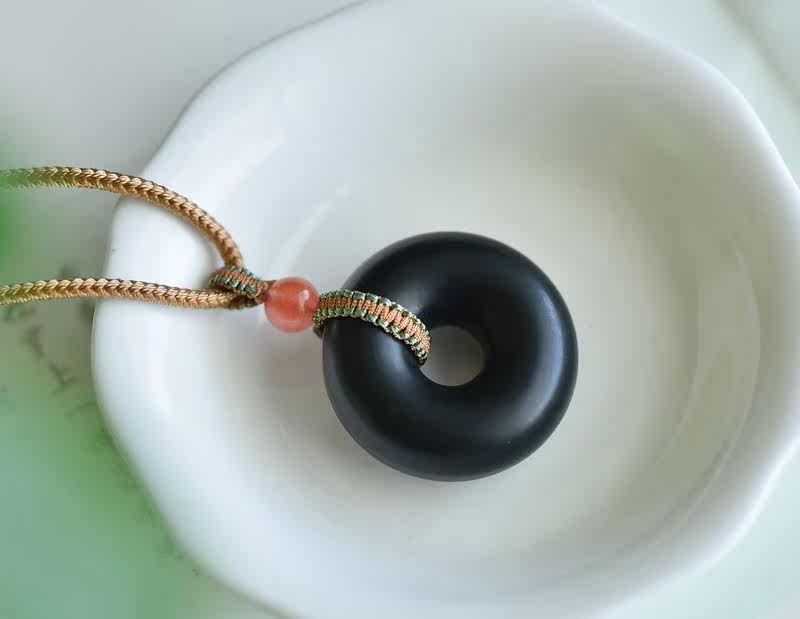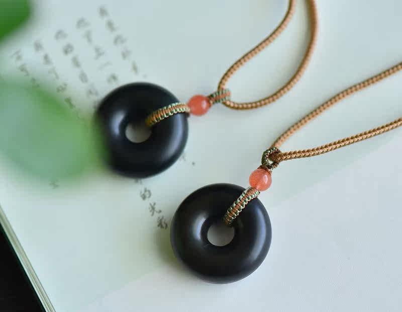 Xinjiang and Tian Yuegoat Grease Grade Ink Jade Green Buckle Pendant Original Design Fine Hanging Rope Brief Pendant Around