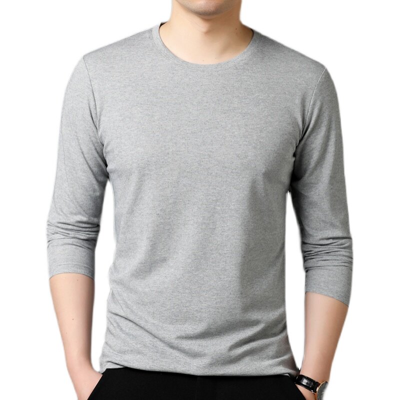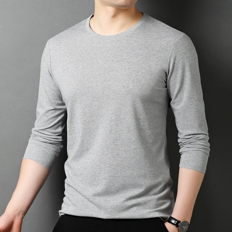 New business casual men's long sleeves T-shirt slim fit sauna silk round collar white autumn clothing blouses with undershirt