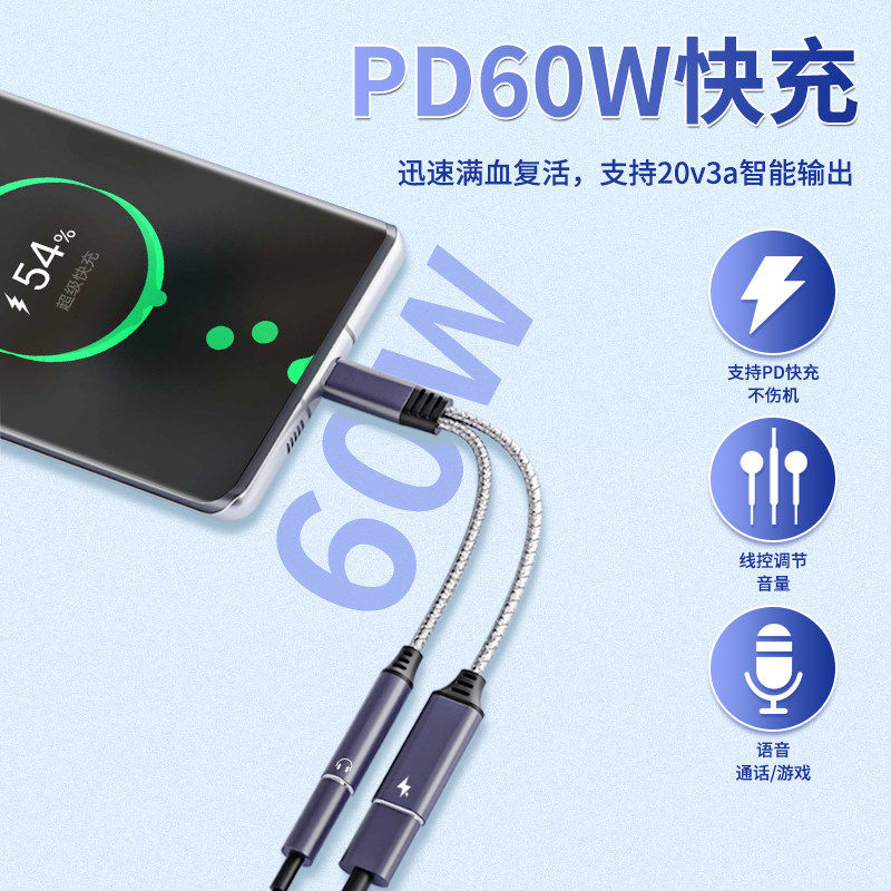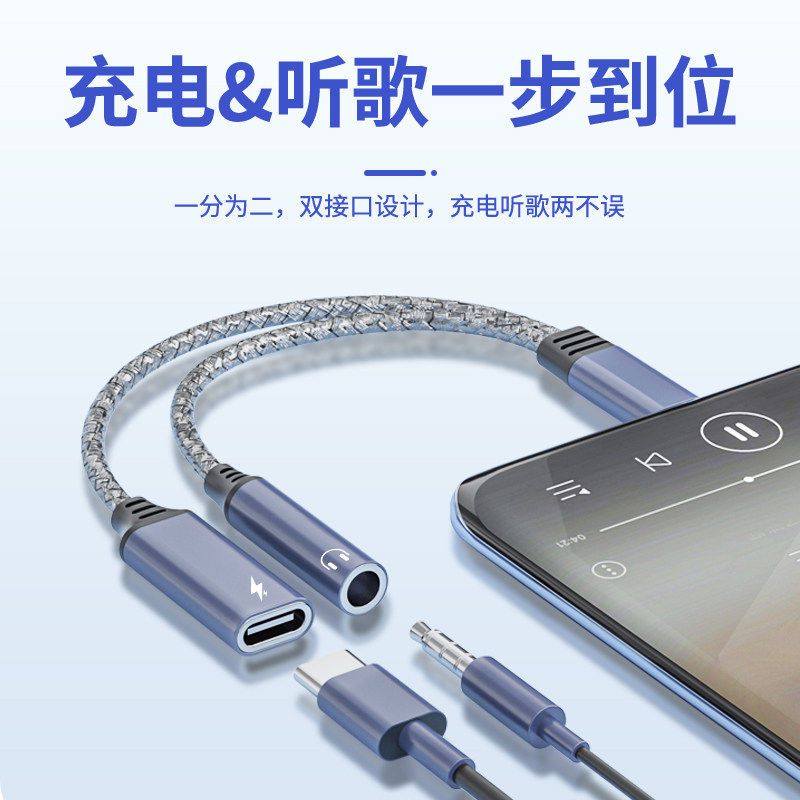 Apply Huawei p50 pro headphone Swivel Double Typec Quick Charge Two-in-one Converter Audio Live Eat Chicken Exclusive Tpec Interface Turn 3 5 Line p40p30 Mobile Phone