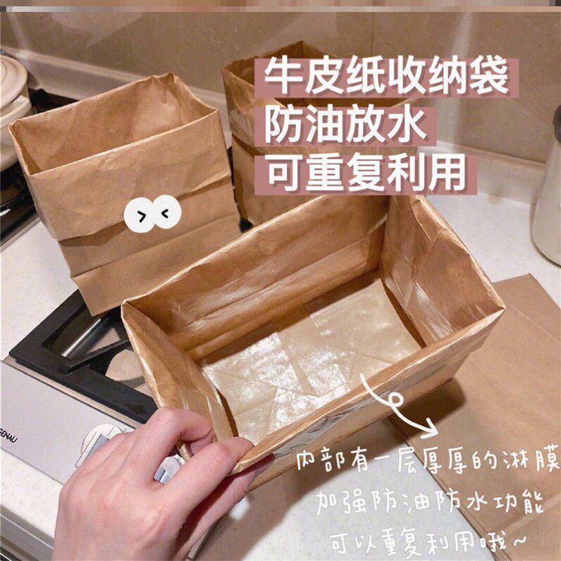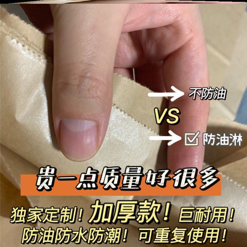 Encounter Food Packaging Shop Small Red Book Kraft Paper Bag Fridge Collection Bag Thickened Anti-Oil Takeaway Pack Paper Bag Zip-proof-Taobao