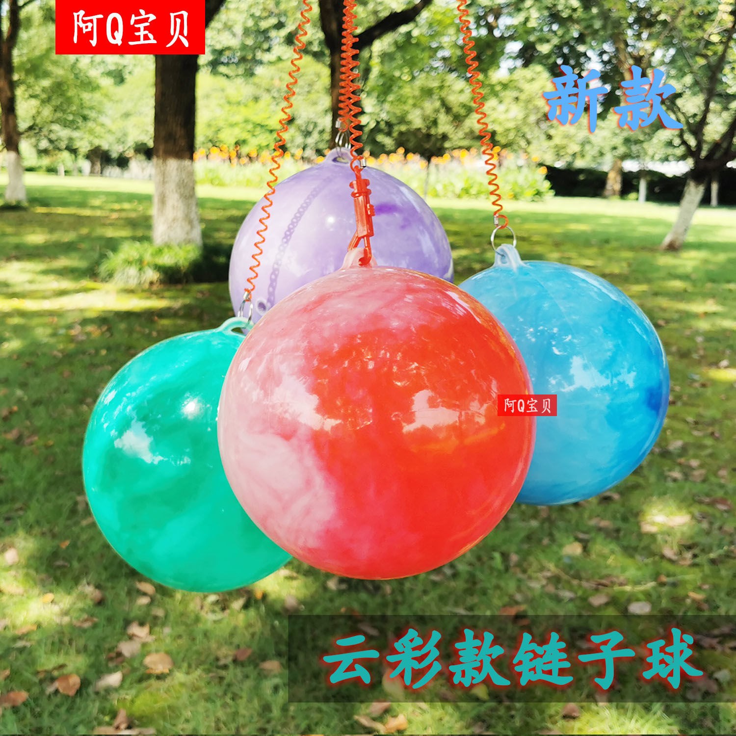 Children's toy chain ball retractable inflatable practice ball rainbow ball cartoon pattern portable pat football