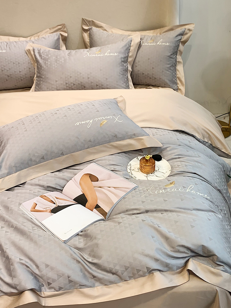 Light and luxurious four pieces of covered quilt cover all cotton pure cotton long suede cotton European style brief jacquard bed sheet Single double bed with supplies