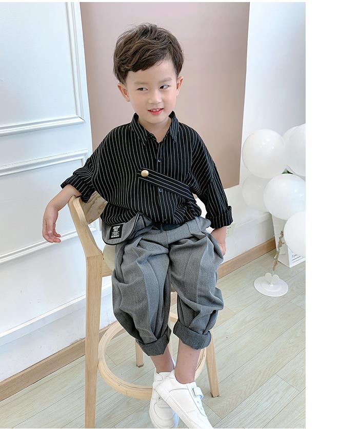 Strip shirt waist pack trousers striped shirt waist pack