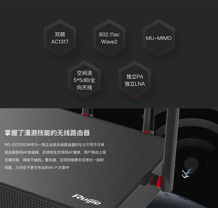 Ruijie ruijie Ruiyi RG-EG105GW enterprise-class Gigabit wireless dual-band router standby capacity 100 units