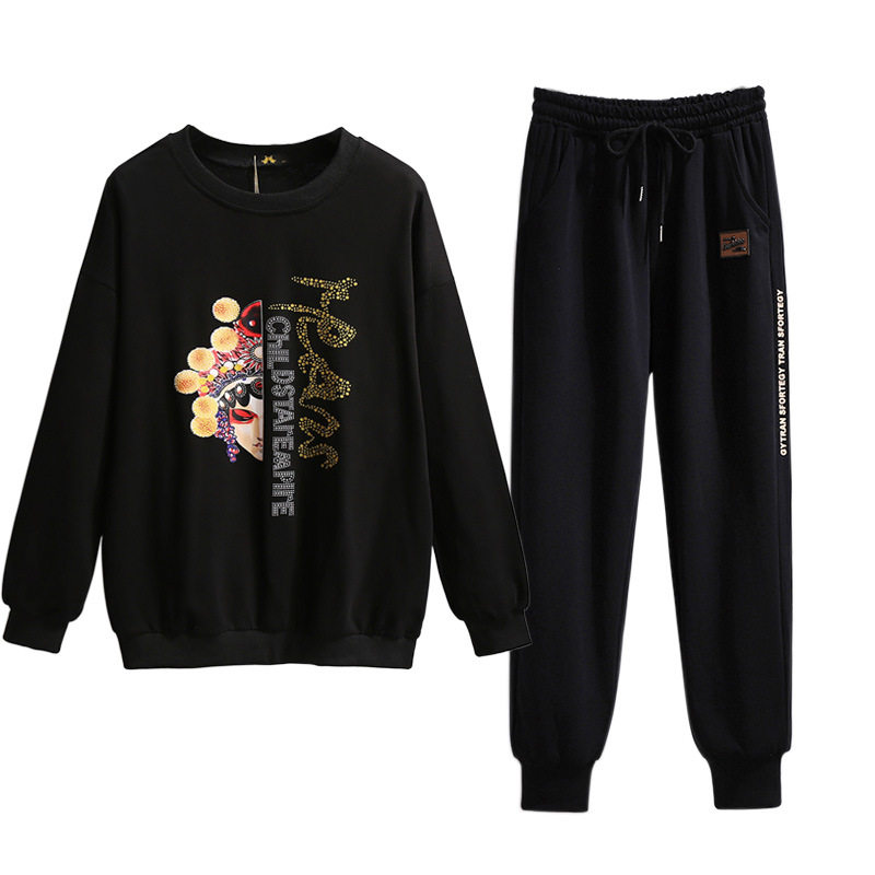 Large size women's clothing Guofeng Wei Yi 200kg 250 fat mm long sleeve T-shirt casual sports pants early autumn women's suit