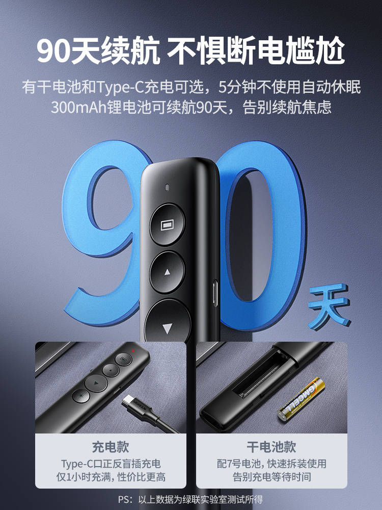(Battery Demovable)Frosted black 100 meters remote control(type-c charging mode)100 meters remote control Supports hyperlink green light (USB Type-C computer general)