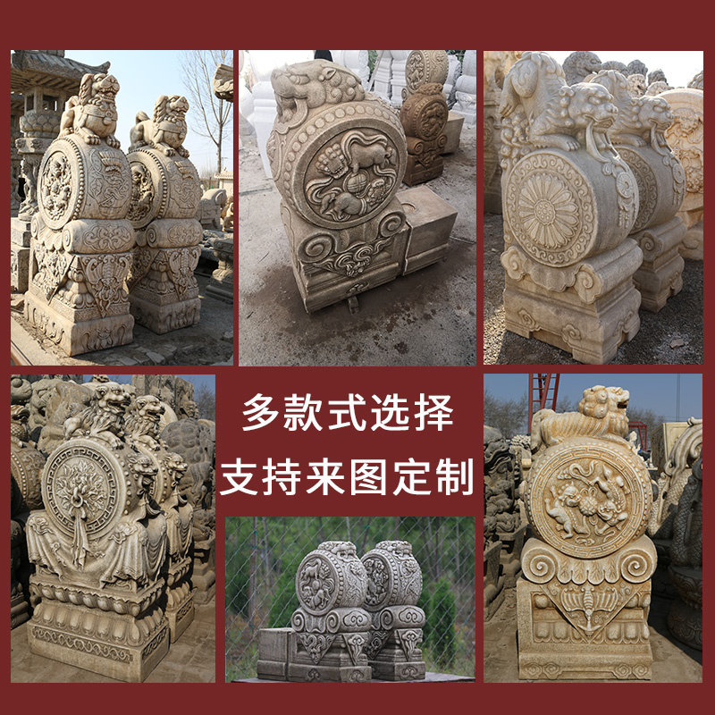 Stone carving antique Chinese white jade gate pier holding drum Shimen drum pair of home door retro Chinese-style gatekeeper town house ornaments